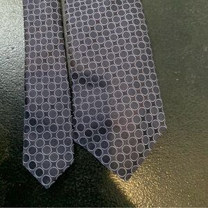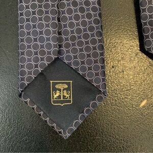 Sophisticated dark blue tie with a stylish circle design. Ideal for formal events.