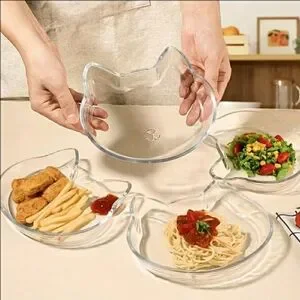 Adorable set of two clear cat-shaped glass plates. Both heat resistant and Microwave safe!! Perfect for serving dinner, snacks, or can be used for decoration. Very Cute!