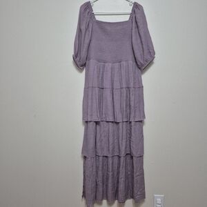 J GEE Women's Purple Feminie Boho Cottagecore Smocked Tiered Maxi Dress Size XL