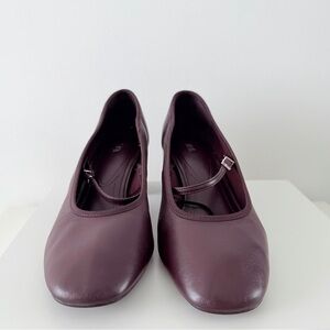 Elegant ZARA Mary Jane pumps in a rich burgundy / wine tone. Classic square toe with a comfortable block heel and adjustable strap. Minimal, timeless silhouette that works for office, evenings, or elevated everyday looks.