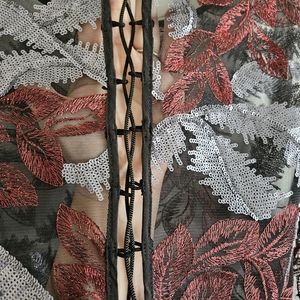 This is a great rich looking statement piece with intricate details. Wear over your favorite undergarment or dress. Ties down the back. Eye catching.