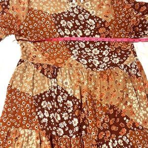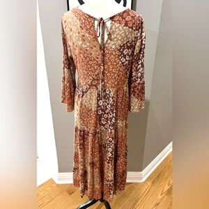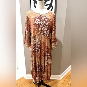Easel Boho Midi Dress Bell Sleeve Floral Patch 100% rayon SZ S EUC