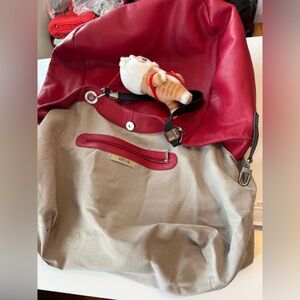 Prune red leather hobo bag w hello kitty car bag charm boho