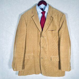 Tasso Elba Corduroy Blazer Mens 46L Tan Cotton Sport Coat Smoking Jacket