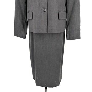 Pendleton Skirt Suit 12Charcoal Gray 98 Virgin Wool 2 Lycra Great Cond