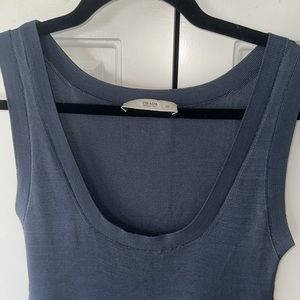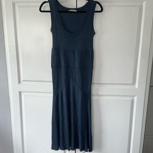 Gorgeous modern knit slightly sheer dress with extrernal seams 🧵 this dress has slight flaws as shown, light spot on lower part of skirt and slight fray of seam around bust