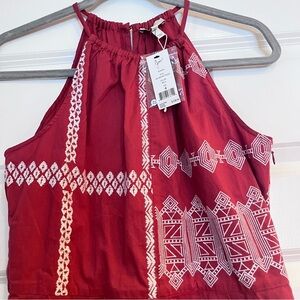 NWT Joie Konomi Top Size 4 Embroidered Halter Sleeveless Tank Peplum Brick Red