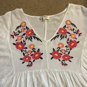 Umgee White Embroidered Pink Floral High Low Top Size L
