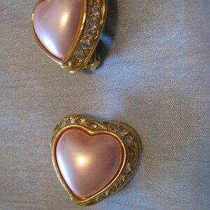 Vintage Joan Rivers Classics Collection Pink Heart & Crystal Clip-On Earrings