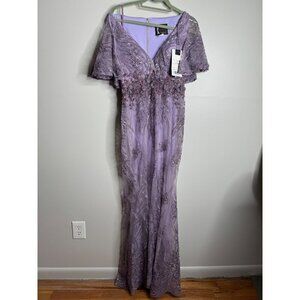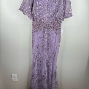 MAC DUGGAL Vintage Lilac Flutter Sleeve Evening Gown Maxi Dress Size 8 NEW 67493