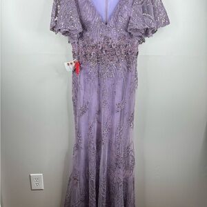 MAC DUGGAL Vintage Lilac Flutter Sleeve Evening Gown Maxi Dress