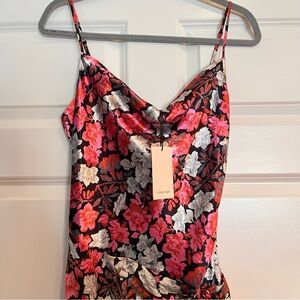 New with tags Cinq a Sept Satin Whitney Dress Size 4 Floral Faux Wrap Spaghetti Straps. Retail $495. Ships quickly from my smoke free home.