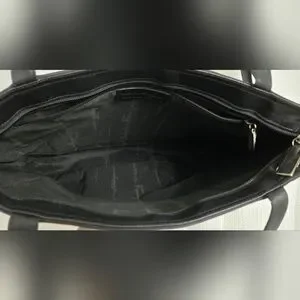 This elegant black tote bag is perfect for any occasion. Its sleek design and versatile color make it a must-have accessory.