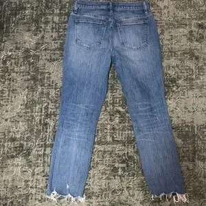 Stylish ankle-length jeans with a distressed hem. Perfect for casual wear.