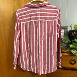 Lovely American Eagle oversize fit red and white stripe long sleeve button down blouse. Women’s size medium. Very good used condition.