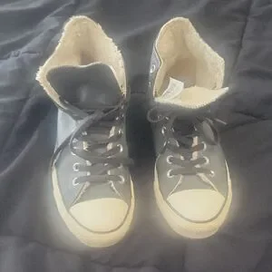 Classic Converse high-tops in Grey with White with warm winterized interior. Ideal for colder days or everyday style. Warn a few times very comfortable.