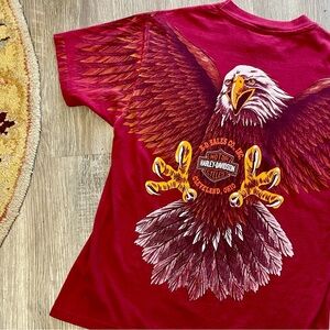 Vintage Harley Davidson Graphic T Shirt 1993 Eagle All Over Print Maroon, 100% Cotton, Made in USA, Tag Size Large