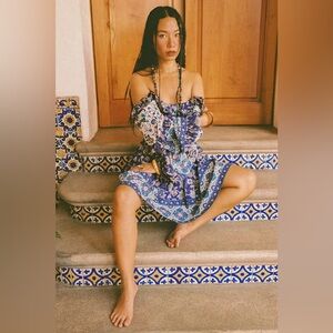 The Clairvoyant Mini Dress in Destiny Blue embodies a free-spirited aesthetic, blending vibrant shades of indigo and soft pink with whimsical print motifs inspired by the 70s. This delightful design features a shirred bodice and elastic sleeve cuffs, striking a balance between playful and chic. Ideal for the modern mystic, it can be accessorized with wooden bangles or Persian beads for a unique vintage-inspired look that effortlessly transitions from day to night. From the brand: Our Clairvoyant Mini Dress in Destiny Blue is the epitome of liberated creativity and hedonism. With a design that echoes the dreamy 70s nonchalance, this dress features a bold, paradoxical palette of indigos and soft pinks, adorned with talismanic print motifs. Its playful length and flirty silhouette make it perfect for the modern mystic. Pair it with wooden bangles and Persian beads for a look that’s both vintage-inspired and fiercely contemporary. - Crafted with 70% LENZING™ ECOVERO™ Viscose 30% TENCEL™ Lyocell x REFIBRA™ - Shirred bodice - Elastic sleeve cuff