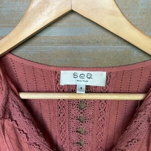 Sea New York Weatherly Pom Crochet Mini Dress Coral Preppy Boho Classic Womens 8