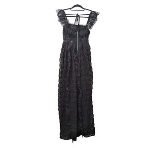 Turn heads in this dreamy sheer black maxi dress featuring delicate tiered ruffle trim, and a flattering square neckline.