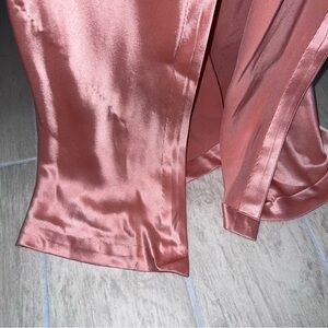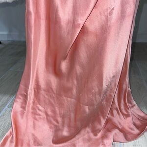Size S. Item was worn one time to a wedding, the gown looks flawless until the bottom on the front and back. (Slight pilling, dirt sports, slight hem unravel).