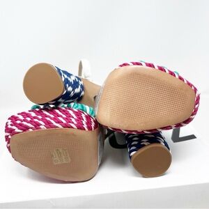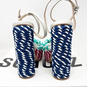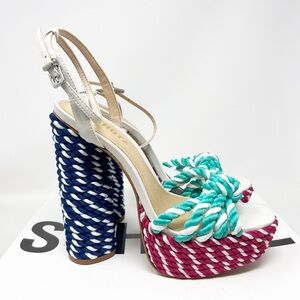 Schutz shulis heels sandals. Navy white pink aqua braided platform heels.
