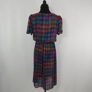 Vintage 80s Neiman Marcus Women's Multicolored Midi Dress size 6 Maximalism