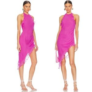 Amanda Uprichard Kalyn Rose Pink Silk Asymmetrical Mini Dress.