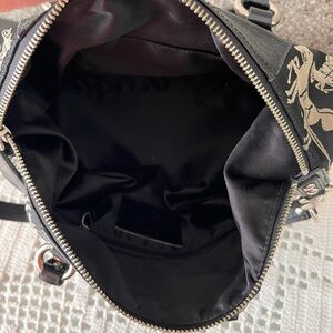 Chic Coach satchel should her hand bag purse with equestrian print. Black leather accents. Ideal for everyday use. No signs of wear other than a little on the silver feet on the bottom - could just be from age to be honest as the bag is like brand new condition