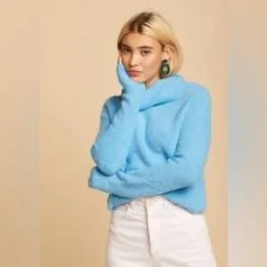 Free People Women's Stormy Cowl Neck Pullover, Size M, Blue