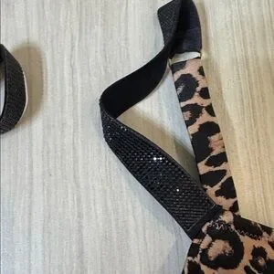 34DDD Victorias Secret bikini top in leopard. Beautiful sparkly black straps.