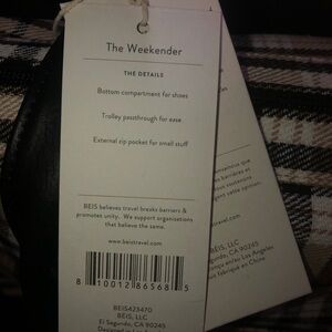 Elegant BEIS weekender with tan plaid pattern. Very clean comes with its strap. It is caved in a bit on the bottom compartment as seen in pictures. All zippers work
