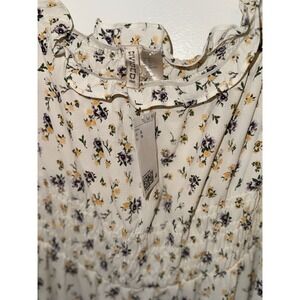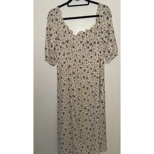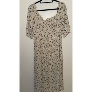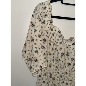 H&M Womens Casual Dress Sz XL White Floral Print Off Shoulder 1/3Balloon Sleeve