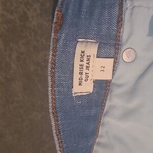 Madewell Mid-Rise Kick Out Jeans by Madewell. These jeans have a chic kicked out flare leg that looks great with boots and heels. Size 32. More measurements are listed below. 94% Cotton 4% Polyester 2% Elastane. Made in Egypt. New without tags and in great condition inside and out.