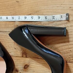 Black Patent Leather Pointed Toe Chunky Heel Pumps Size US 11 NWOT