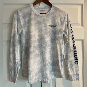 Abercrombie Long-Sleeve Print Logo Tee Light Blue Dye Effect Soft AF XS