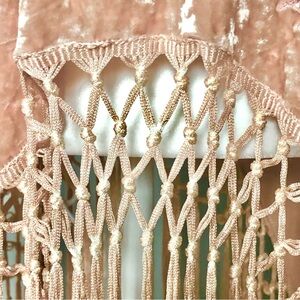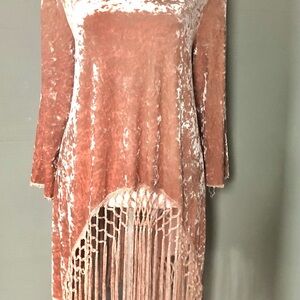 This Elegant pink/peach colored Over The Head Velvety Poncho Top is a luxurious and stylish addition to any wardrobe. Made from velvety fabric with embroidered detailing, this long sleeve pullover top features fringe accents for added flair. Perfect for a variety of occasions, concerts, art openings, weddings, parties, casual outings, and formal events, this pink top is designed to be versatile and chic. The boho groovy style and one-size-fits-all design make it a convenient and fashionable choice for the summer, fall, and spring, Winter seasons.