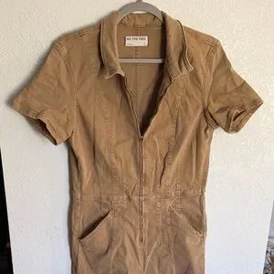 The MOST flattering jumpsuit! It has structure in all the right places but is stretchy and comfortable. The seem work in the torso is where it’s at! Tattered flare gives the perfect country boho look.. could easily be worn by size medium to xtra large bc of the stretch