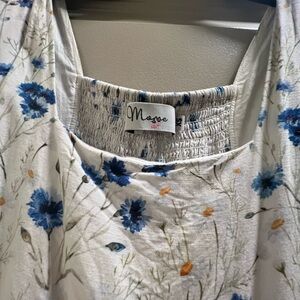 Step out in style with this chic floral midi nursing dress. Featuring elegant blue and white hues, it's perfect for any occasion. Breastfeeding zippers hidden on both sides of breast! Side zipper needs a bit of a tug to put on, but it works!