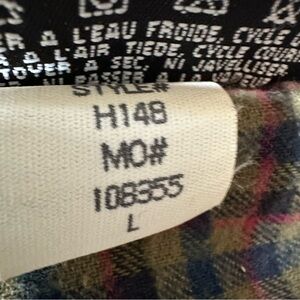 Button in/out lining - green plaid flannel lining, tag reads "PrimaLoft Synthetic Down"
