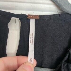 Free People Blouse Womens XS Black Sheer Swiss Dot Long Sleeve Peplum Boho