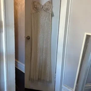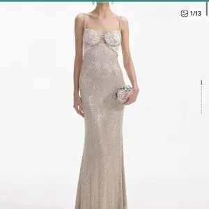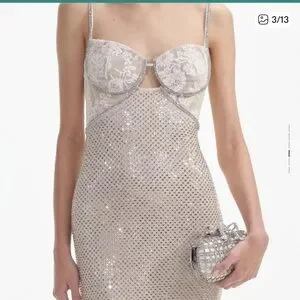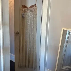 Self Portrait cream rhinestone mesh maxi dress elegant cocktail ethereal US 12
