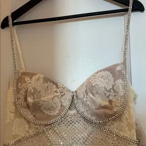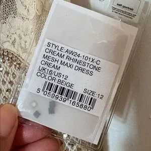 Self Portrait cream rhinestone mesh maxi dress mid weight lined UK 16 US 12 NWT