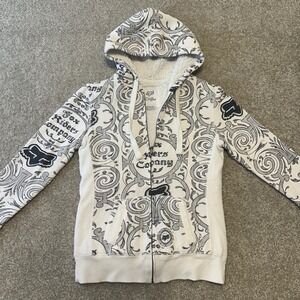 Fox Girls M Sherpa Lined Zip Up Hoodie White Black Tattoo print Motocross Y2k