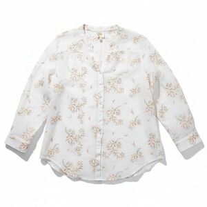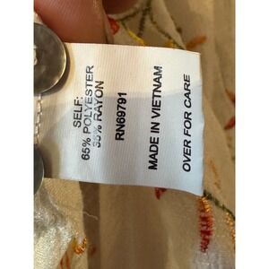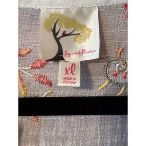fig and flower embroidered sheer tunic shirt white floral print button up XL