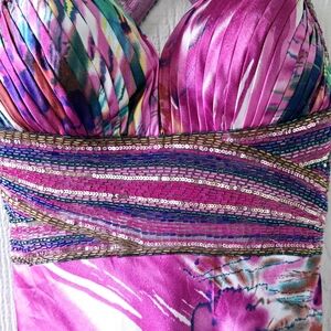 Davids Bridal Mermaid Prom Dress Beaded Sequin Criss Cross Straps Watercolor 1/2