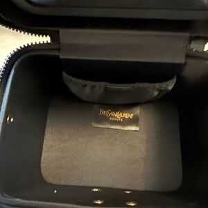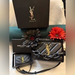 Elegant black quilted design. Features gold YSL logo and chain detail. Ideal for cosmetics. Includes boxes and extras❤️