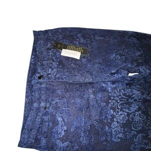 DG2 by Diane Gilman Blue Straight Leg Pants with Rhinestones Floral Pattern