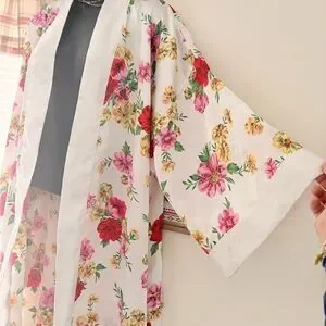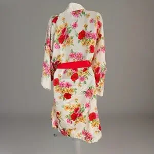 Victorias Secret Womens OSFM Robe Vintage Ivory Satin Floral Kimono Gold Label