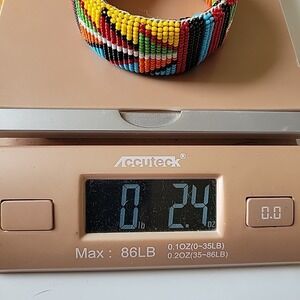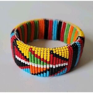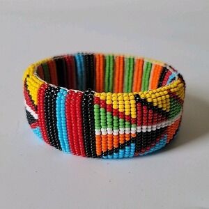 Vintage Handmade Kenya Maasai Glass Beaded Wide Bangle Bracelet Colorful Ethnic